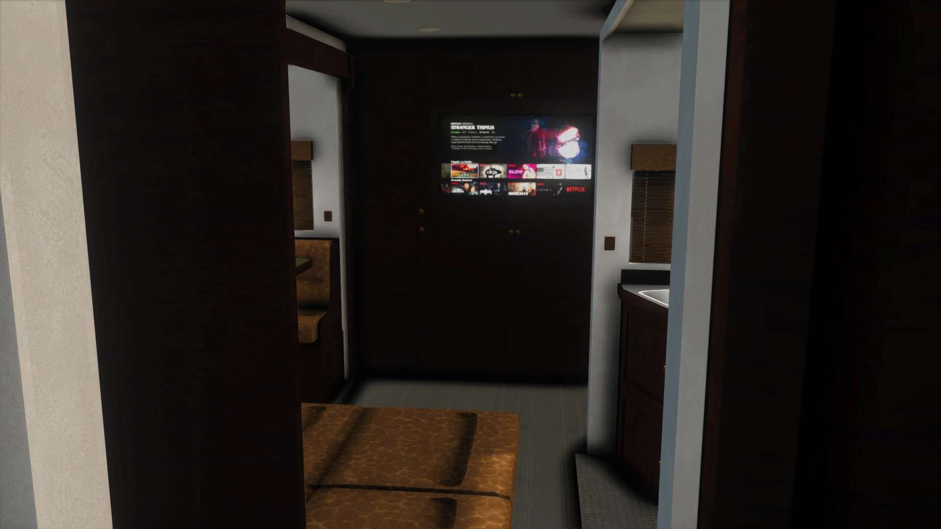 Voller Zugang zum Wohnmobil mit Innenausstattung und Beleuchtung