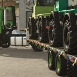 Ein Set verschiedener Anhänger für Agrar-Sattelzugmaschinen wie den Heizotruck, ideal für den Einsatz auf dem Feld. Neben der speziellen Anbauvorrichtung des Heizotrucks zeichnen sich die Anhänger durch erhöhte Bodenfreiheit, große Geländereifen und konfigurierbare Lenkachsen aus.