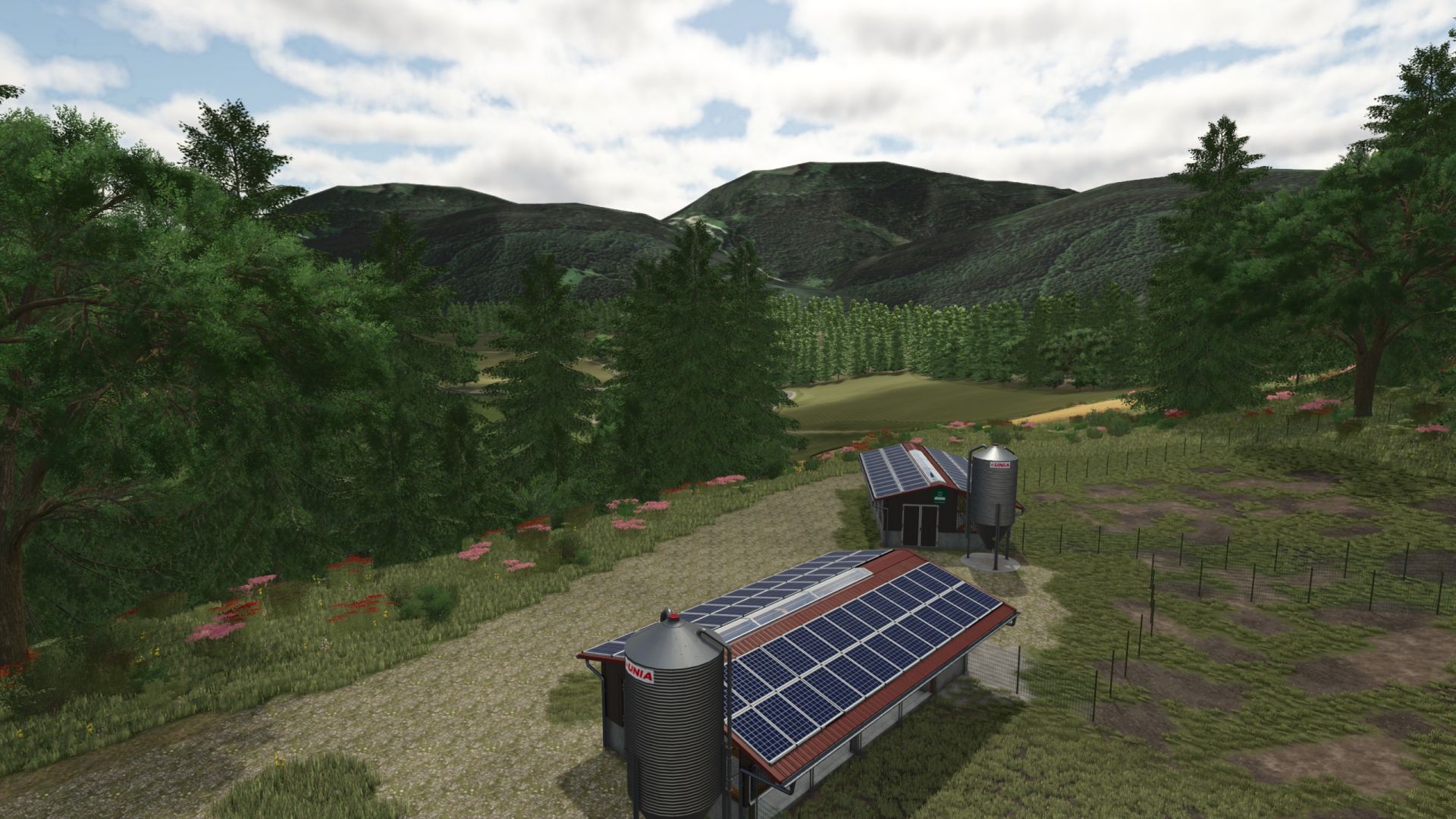 Hier erwartet Sie eine bergige Landschaft mit zwei integrierten Bauernhöfen.