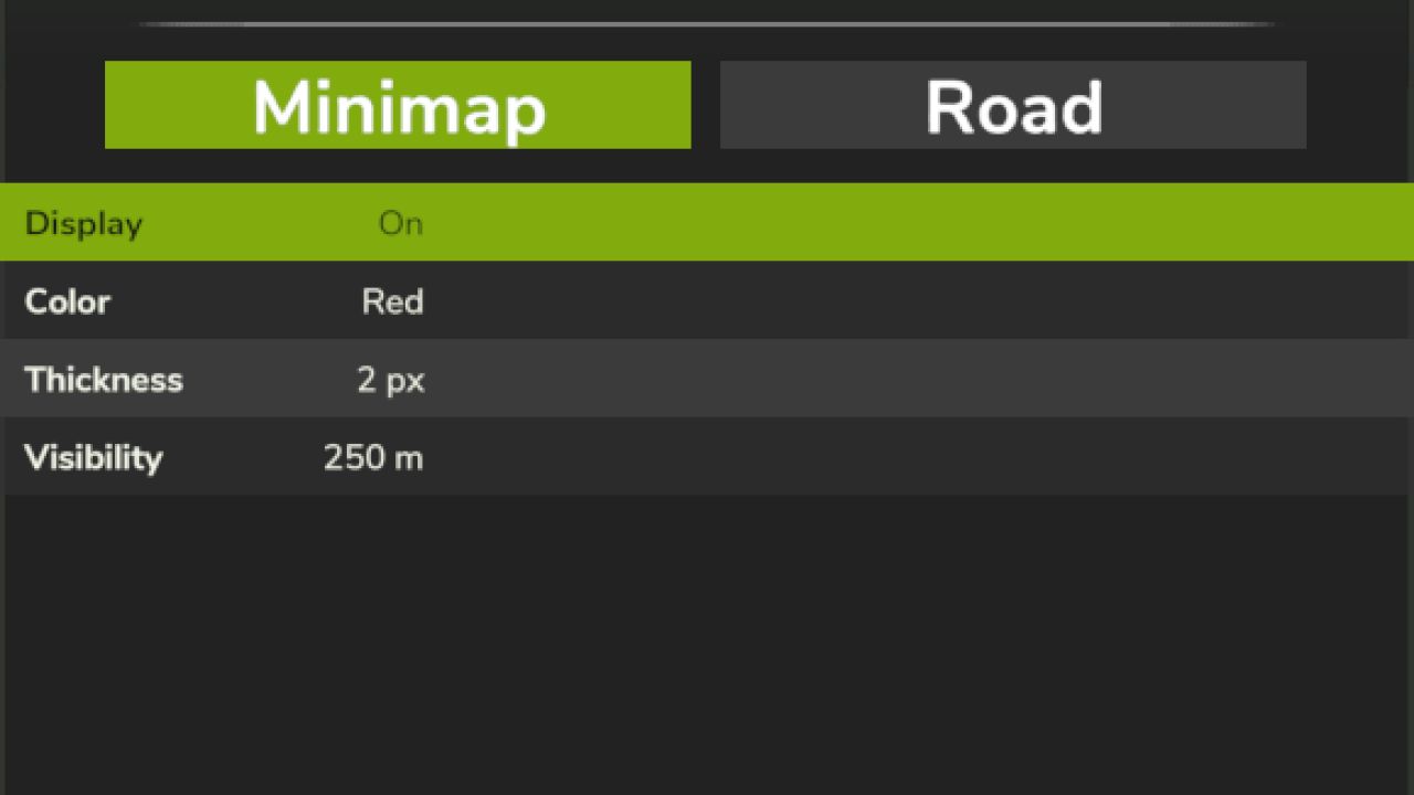 Anzeige: Wenn Sie nur die Linien auf der Straße sehen möchten, können Sie diese hier für die Minikarte deaktivieren.