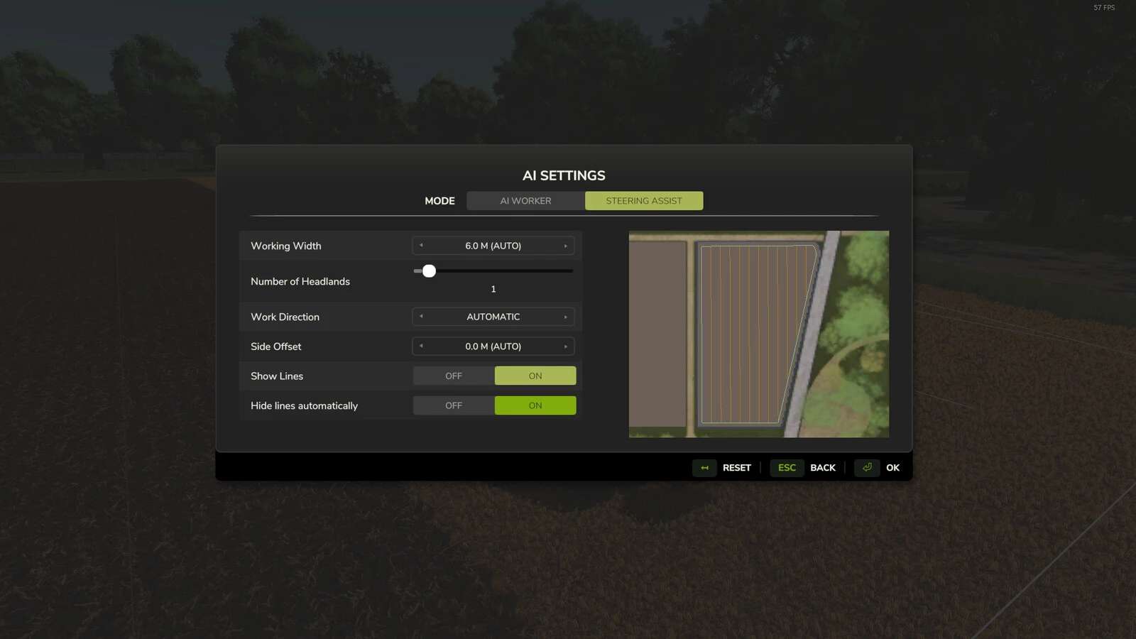 Dieser Mod fügt eine Option hinzu, um die GPS-Linien 3 Sekunden nach der Aktivierung der Lenkunterstützung zu deaktivieren.