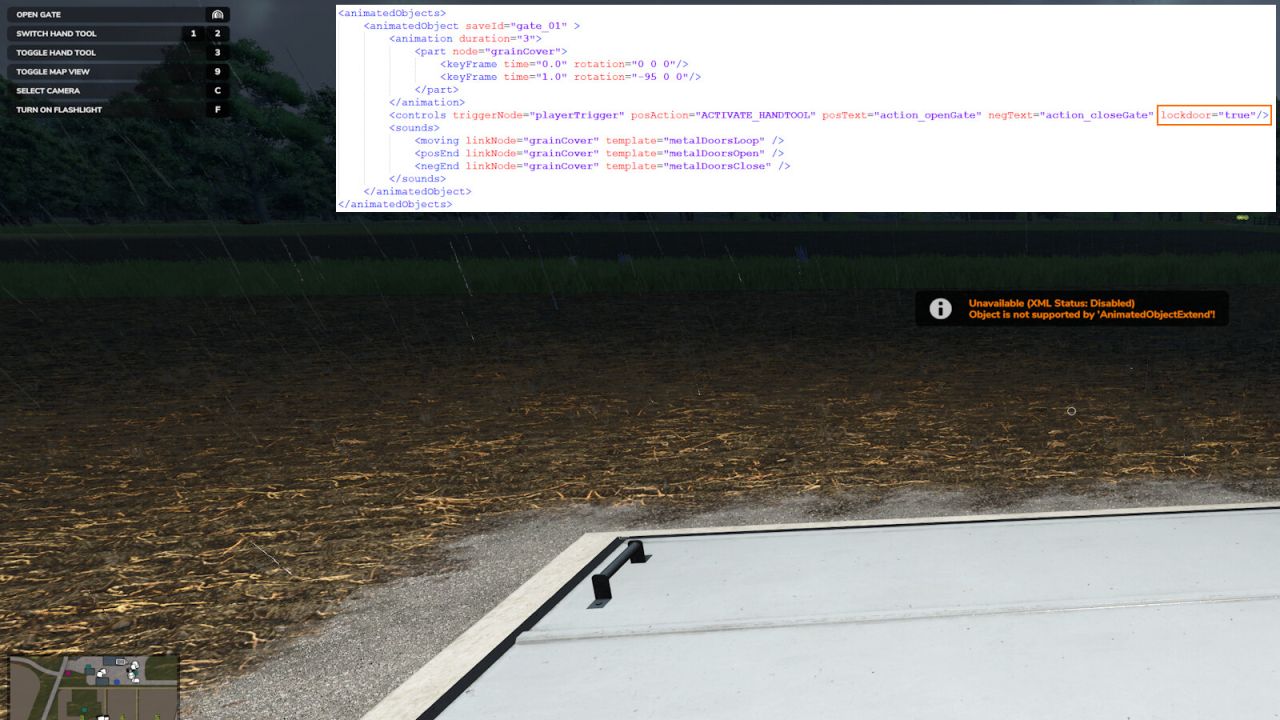 Automatisches oder manuelles Öffnen von Türen und Toren mit "AnimatedObject". Keine Implementierung in anderen Mods erforderlich (Standardtasten: L und LCRTL+L, nur zu Fuß).