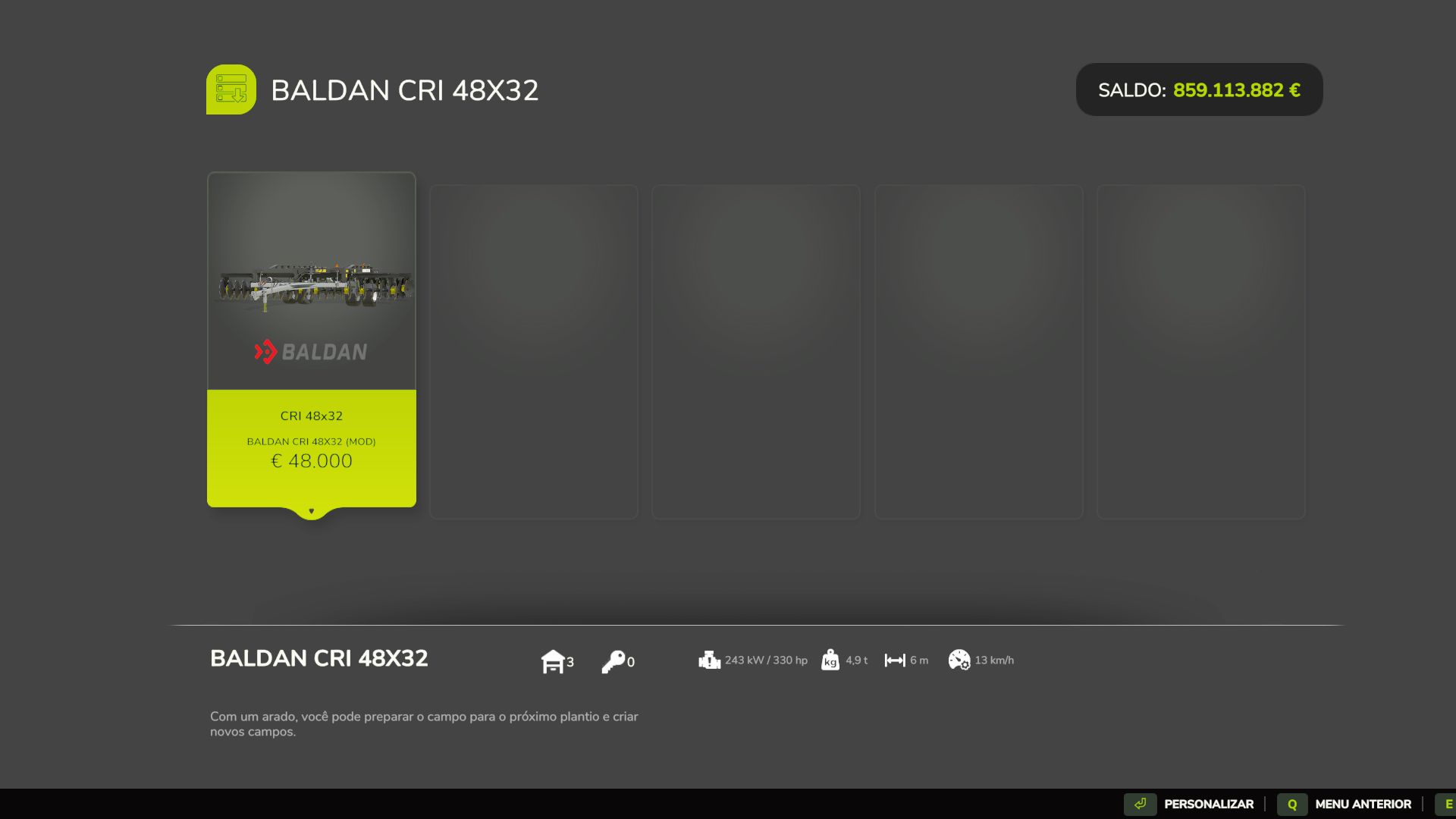 Der CRI wurde für schwere Traktoren entwickelt und bietet hohe Leistung und einwandfreie Bodenkorrekturqualität. Dieses Gerät funktioniert wie ein Pflug und ermöglicht das Öffnen neuer Felder und das regelmäßige Pflügen.