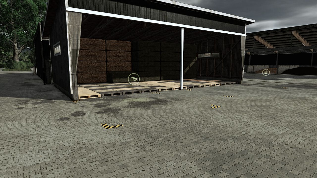 – Ein Ballenlager aus alten und neuen Paletten, die noch in einer Scheune herumlagen