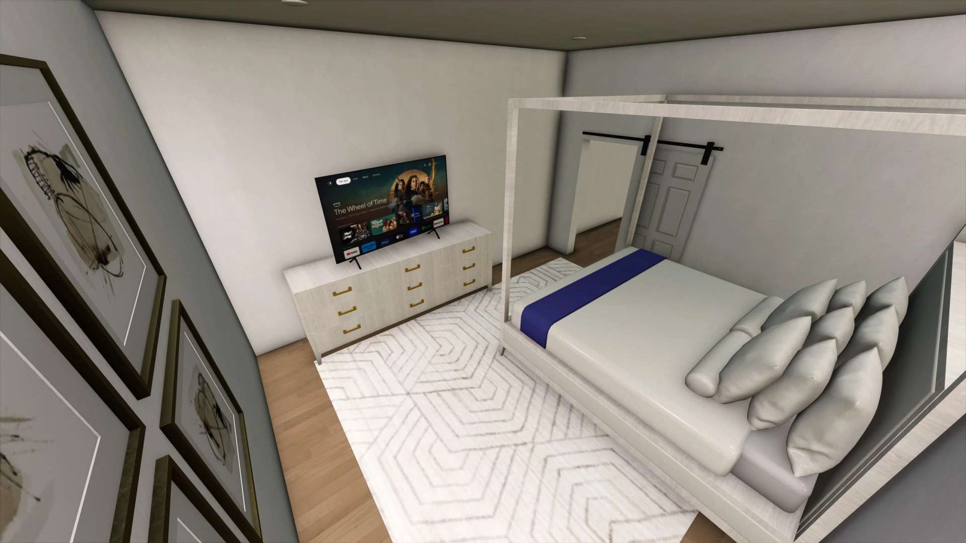 Das Barndominium ist jetzt fertig! Es ist komplett möbliert und verfügt über einen voll funktionsfähigen Schlafauslöser und einen Kleiderschrank.
