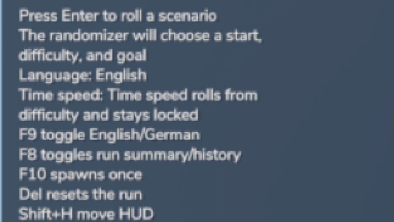Diese Mod erstellt ein zufälliges Startsetup für das Basisspiel mit verschiedenen Szenariotypen, Ausrüstungskombinationen, Herausforderungszielen und Schwierigkeitsgraden. Jeder Spieldurchgang fühlt sich anders an und kann als neue Herausforderung für Survival-Spiele oder als Grundlage für neue Spielreihen dienen.