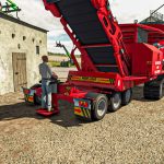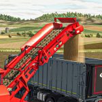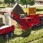 Über das Förderband des Schredders können Sie die geschredderten Produkte in einen Anhänger oder direkt auf den Boden entladen, indem Sie im Spiel den Befehl „Hier entladen“ verwenden.