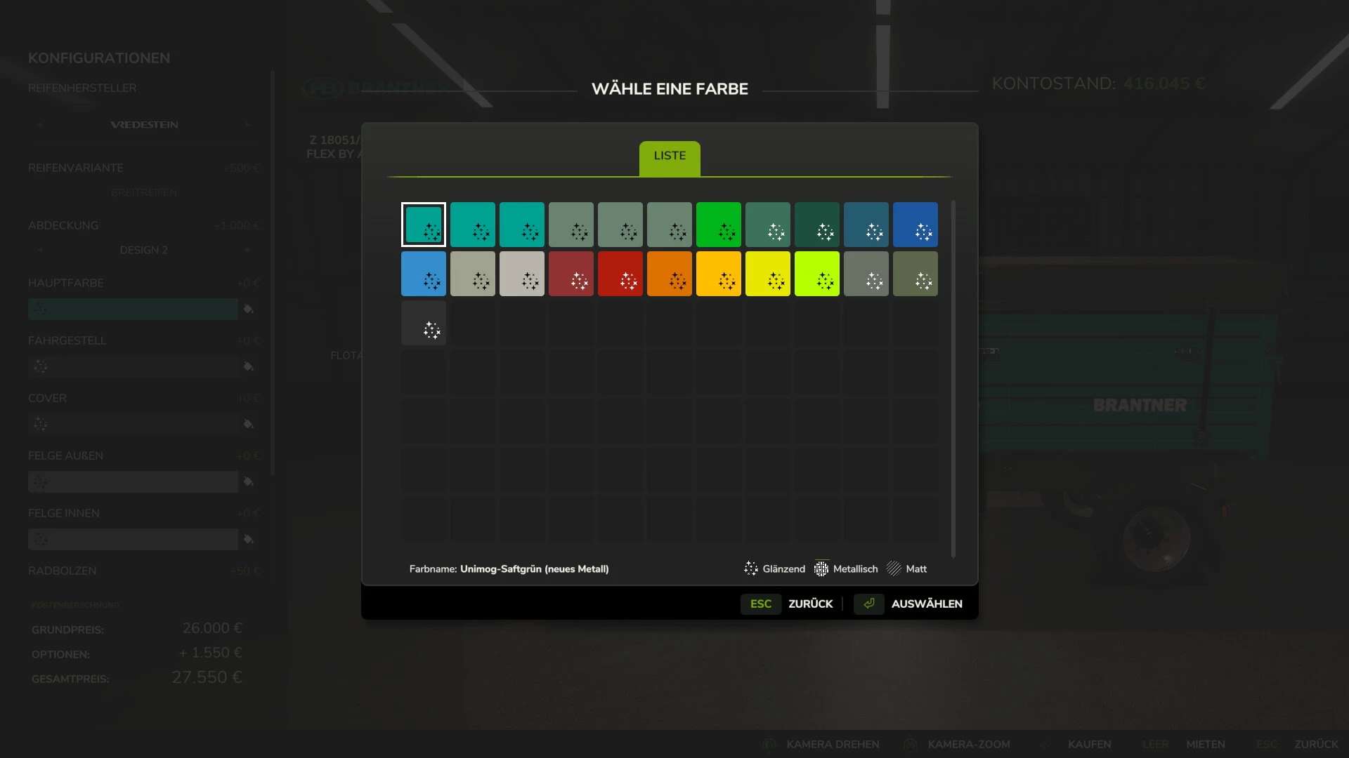 Ich habe mir die Mühe gemacht, einen Standardanhänger aus dem Spiel zu nehmen und ihn in Unimog-Farben konfigurierbar zu machen.