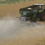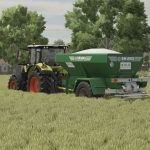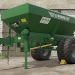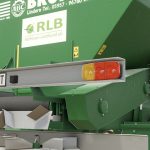 Einachsanhänger für granulierten und staubigen Dünger oder Kalk, ausgestattet mit einem 800 mm breiten Förderband und steilen Wänden, um Brückenbildung zu vermeiden.
