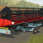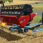 Der schwenkbare Schneidwerksanhänger von Cochet ermöglicht den einfachen Transport und die problemlose Montage von Mähdrescher-Schneidwerken auf Straßen und Feldern.