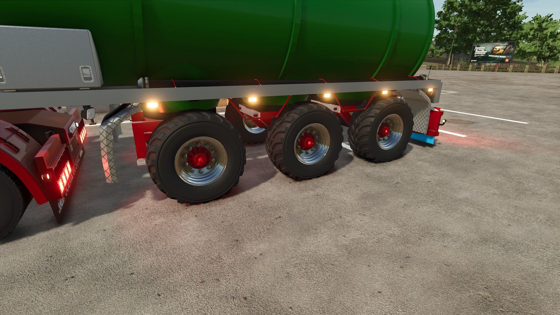 Halbe Schmutzfänger passend zu den Traktorreifen angebracht.