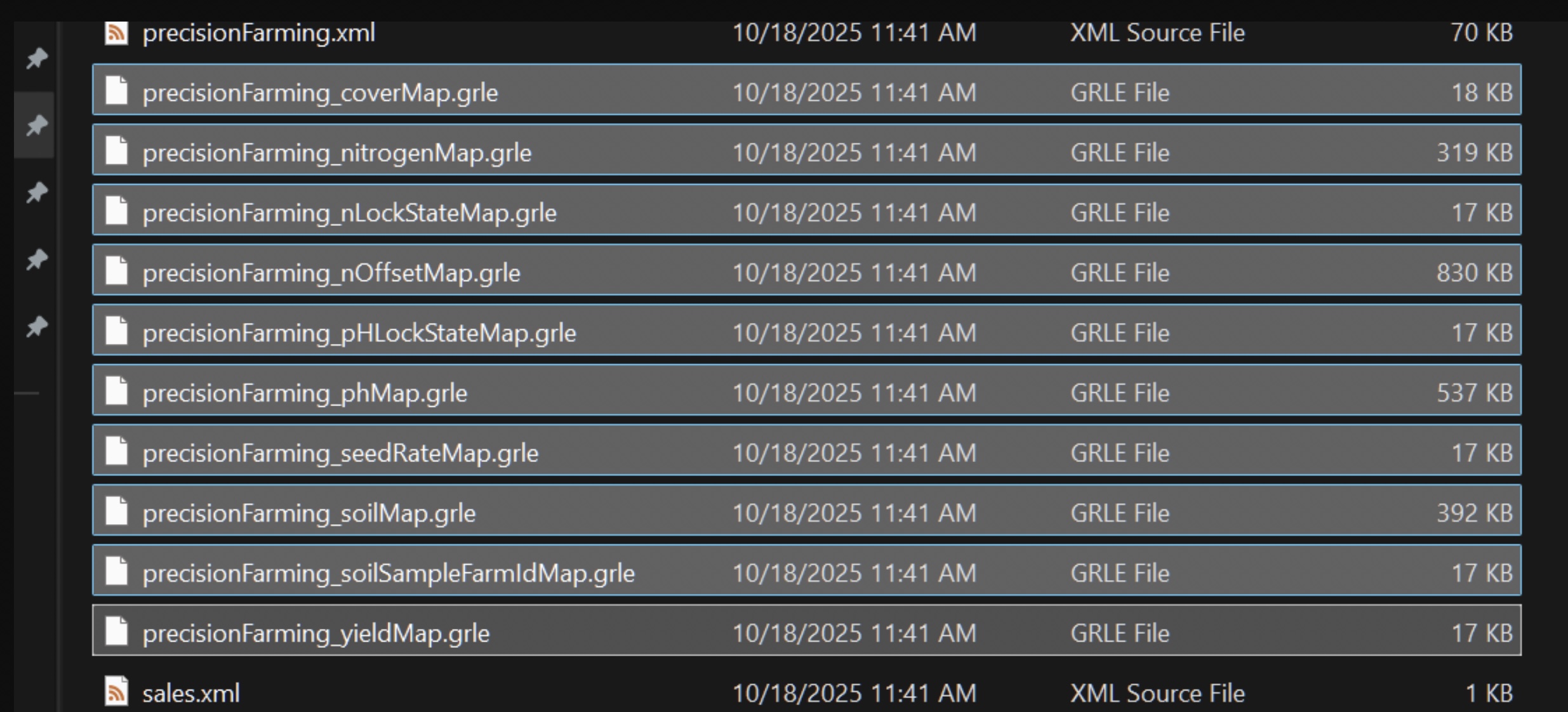 Die Datei `precisionFarming.gle` aus dem Speicherordner wird von PF neu erstellt und passt die Größe an. Nach dem Zurücksetzen der PF-Layer sollte das Spiel wieder normal laufen.