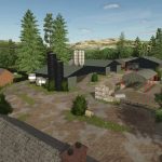 – Zwei bewirtschaftete Bauernhöfe, einer davon mit Getreidesilo. Zwei Forstgebiete auf der Karte.