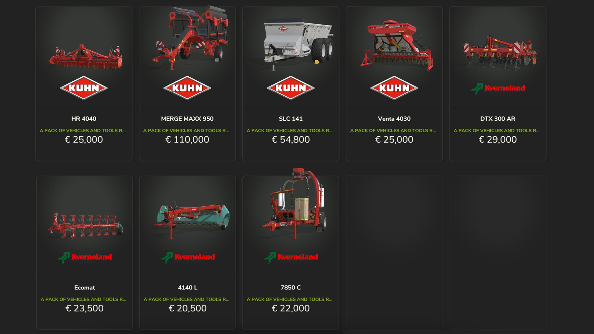 Kuhn – dc401, ga15131, gf8712, gmd4411, hr4040, mergeMaxx950, slc141, venta4030,