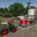 Die Mischanlage kann mit einem Frontlader beladen werden und Ballen direkt in den Mischbehälter oder loses Material an der Vorderseite der Anlage. Das Endprodukt ist eine Totalmischration wie bei klassischen Futtermischwagen.