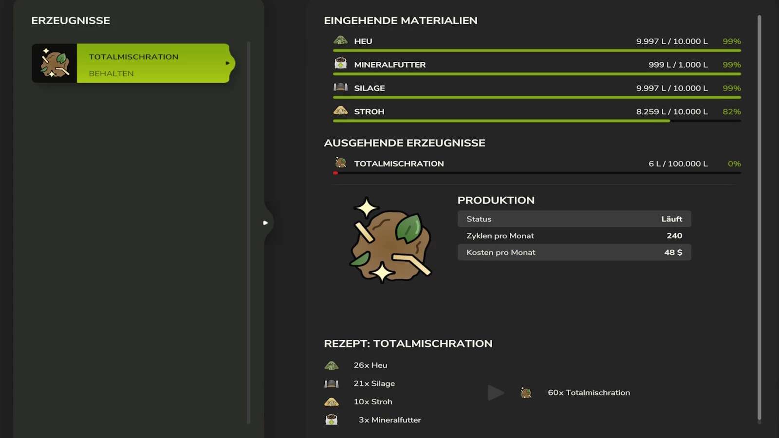 Mischfütterungssystem für die Gesamtmischration.