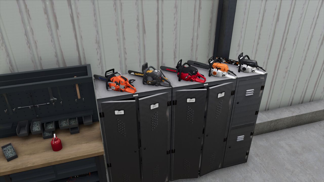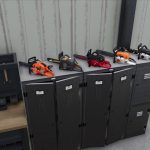 Bis zu 5 Kettensägen können auf den Schließfächern aufbewahrt werden.