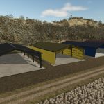 Großer Metallpavillon mit Wänden und Bunkersilo