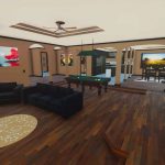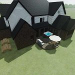 Dies ist ein detailliertes Bauernhaus mit 4 Schlafzimmern, darunter die Master Suite, 3 Badezimmern, Küche, Esszimmer, Waschküche, Arbeitszimmer, einer angeschlossenen Garage für 2 Autos und einer kleinen hinteren Terrasse. Diese Version für 25 Personen verfügt auch über farblich wählbare Funktionen. Die Auffahrt, Cornhole-Bretter und Büsche an der Vorderseite wurden entfernt.