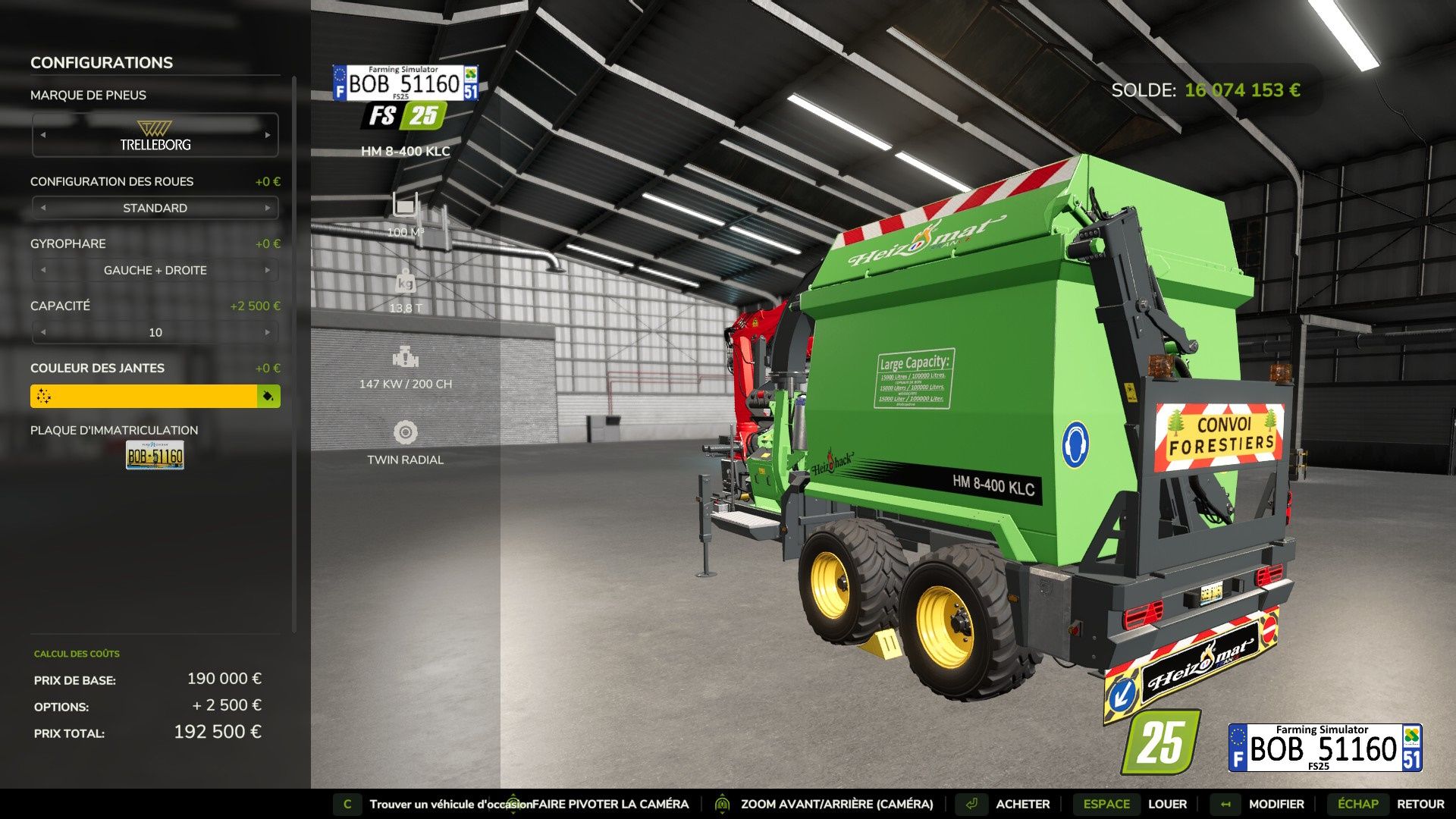 Hallo zusammen, heute veröffentliche ich den MOD für den Heizomat HM 8-400 KLC für FS25, der in die Spielversion übernommen wurde. Sie können zwischen 10 Ladekapazitäten (16000 l / 100000 l) und der Felgenfarbe wählen. Außerdem können Sie hinzufügen: 2 Gyrophare, 1 Lätzchen, 1 Forest-Konvoi-Panel und 1 Feuerlöscher. Weitere Informationen finden Sie auf den obigen Fotos. Vielen Dank und viel Spaß beim Spielen.