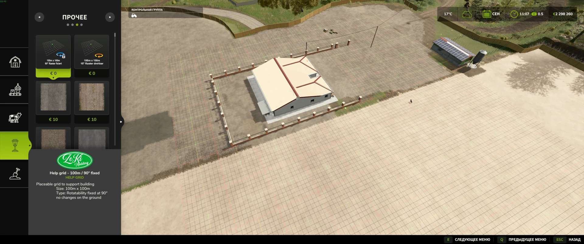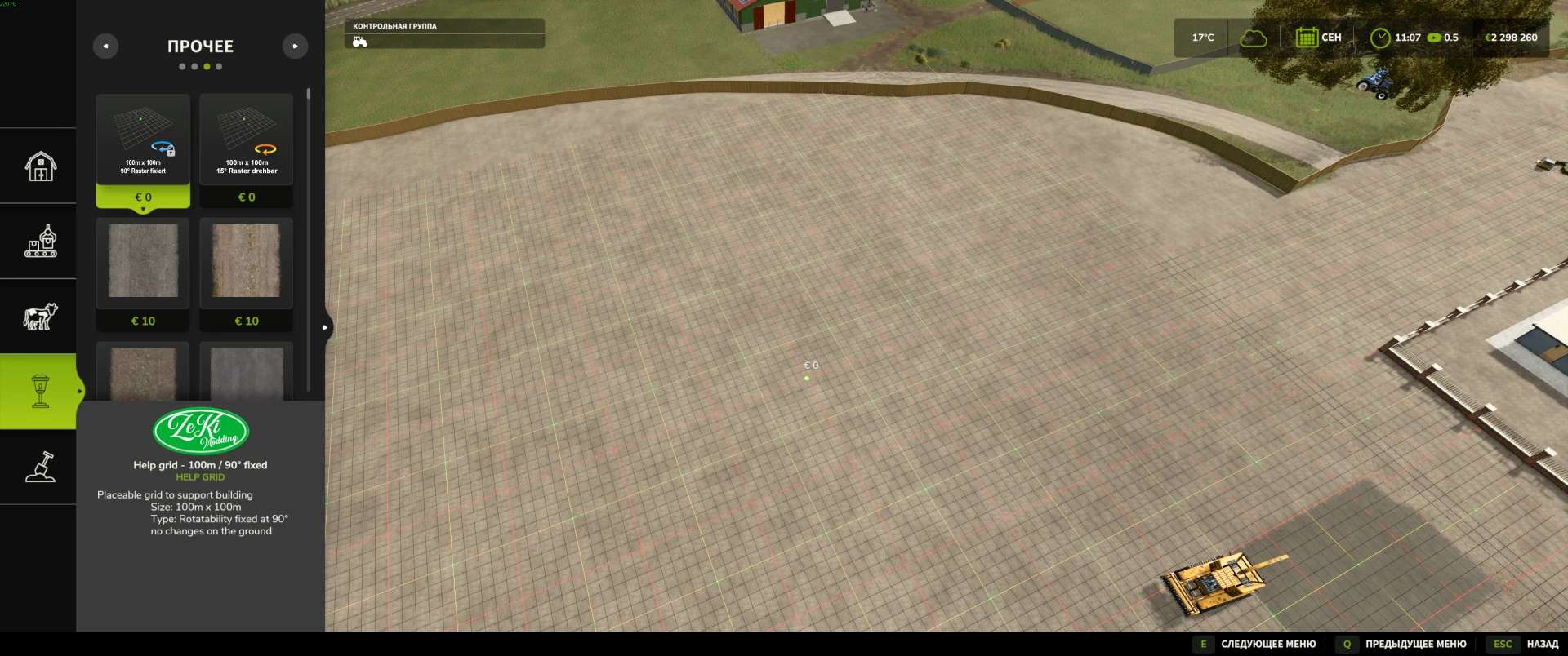 Die Hülle aus der FS 22 Help Grid Mod enthält zwei Varianten eines „Baurasters“ mit den Maßen 100 x 100 Meter, das an beliebiger Stelle auf der Baustelle platziert werden kann.