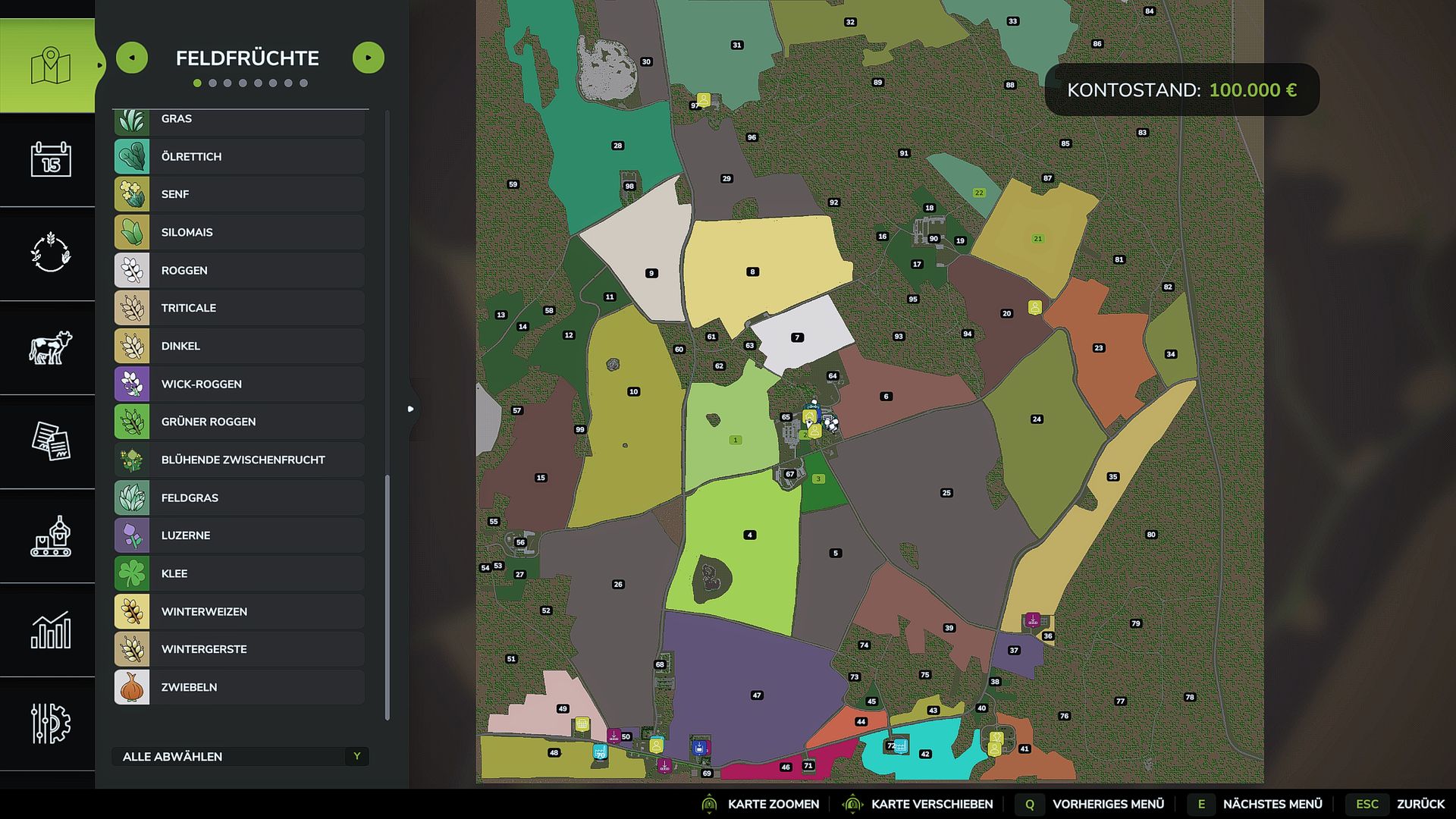 Insgesamt 99 landwirtschaftliche Flächen, darunter 50 Felder und Wiesen