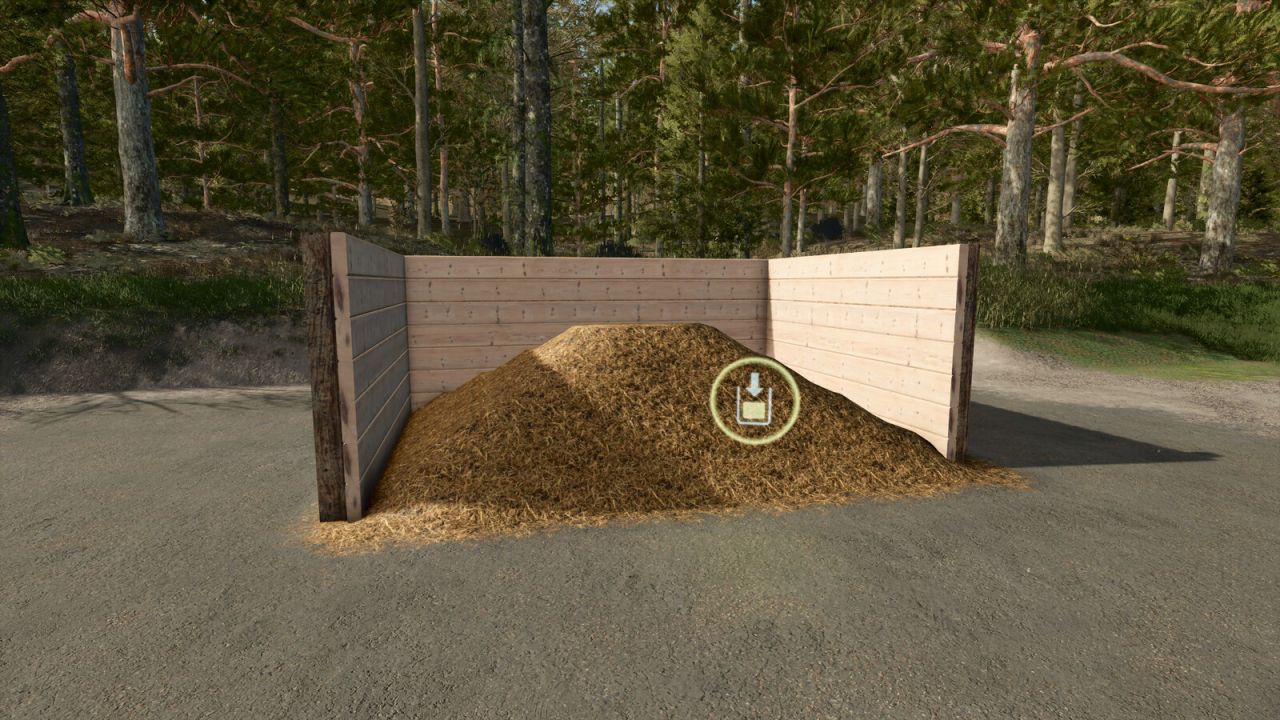 Diese Scheune hat eine Besonderheit: einen Ballenlagerplatz. Da Mist ohne Skript nicht unterstützt wird, habe ich die Mistproduktion aus Stroh für Schafe/Ziegen hinzugefügt.