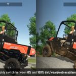 – Doppeltippen auf die Feuchtigkeits-Hotkey schaltet den Feuchtigkeits-Debug-Modus ein/aus (gsVehicleDebugWetness)
