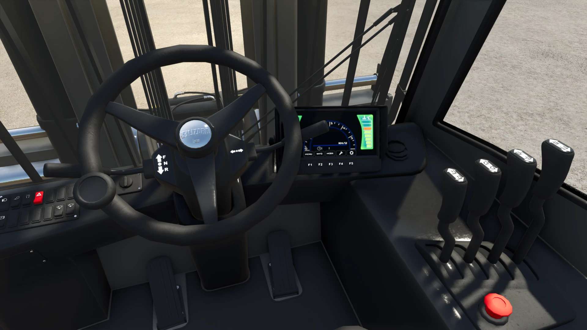 Die Schalter, Hebel und Pedale in der Kabine sind animiert.