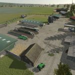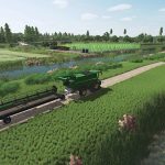 4x Karte in Brandenburg (NW von Rhinow). Reales Gelände, fiktive Dörfer und Straßen (keine 1:1-Nachbildung). 112 Felder (1,4–53 ha), Waldgebiete, mehrere Bauernhöfe sowie integrierte und frei platzierbare Produktionsanlagen. Feldwege und Straßen können über Farmland 113 erworben werden. Modder: FrankSt
