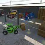 Zusätzlich gibt es einen zweiten Ballenlagerplatz, der manuell im „Freiplatzierungsmodus“ unter dem Schuppen positioniert werden kann. Er hat die gleichen Abmessungen wie ein Fach des Schuppens und ist nützlich, wenn Sie die Strohballenlagerung von der Heuballenlagerung trennen möchten.