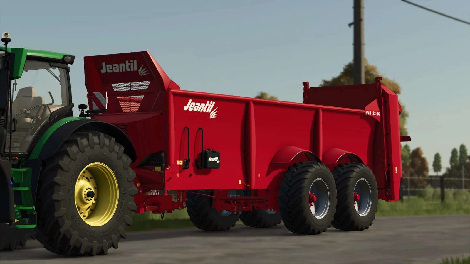 Jeantil EVR 23-16 Epan6 Miststreuer, entwickelt für effizientes Ausbringen von Mist mit hoher Kapazität und gleichmäßiger Verteilung.