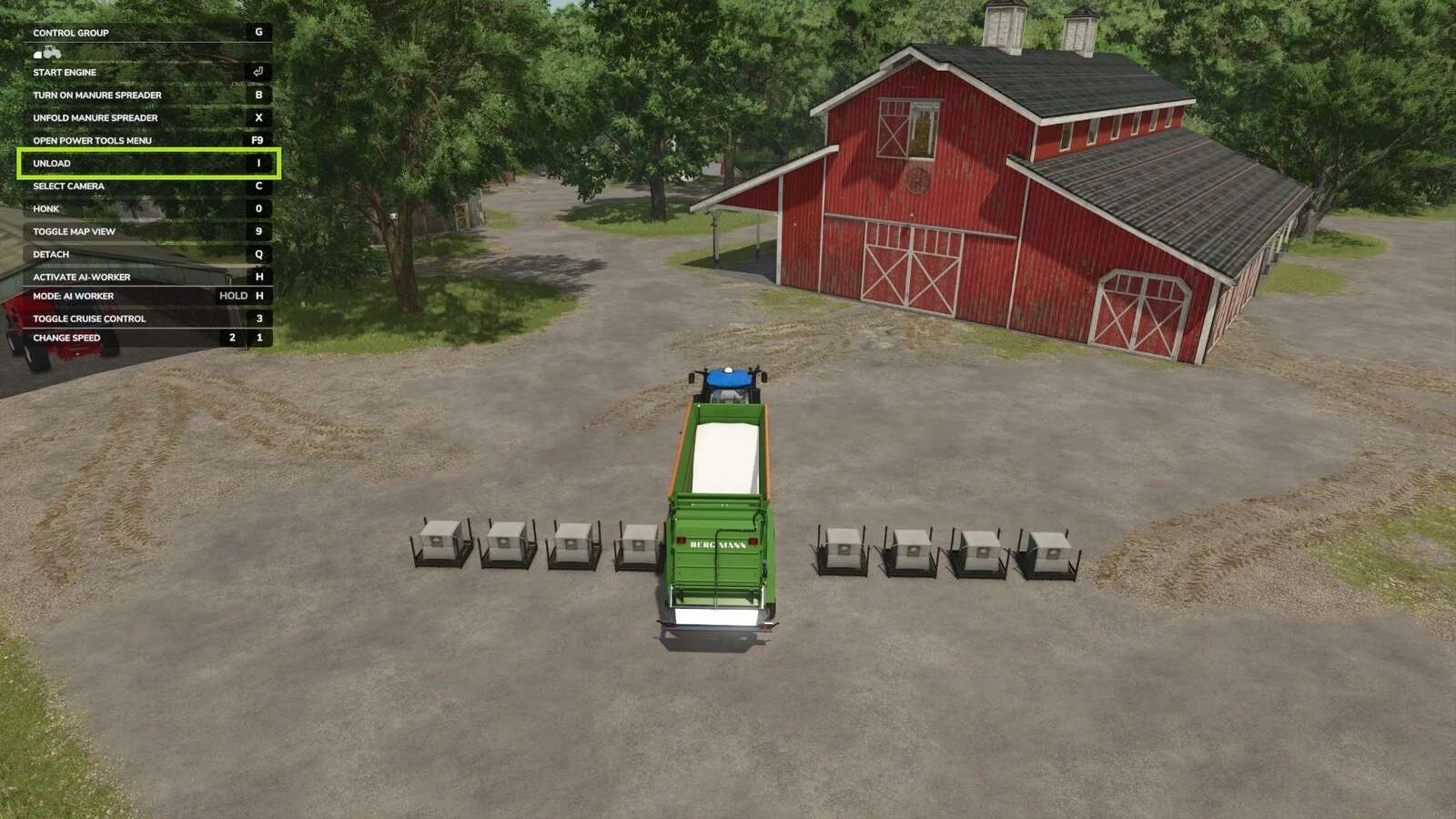 Mist kann nicht entladen werden, da Mist im Basisspiel nicht als BigBag-Palette verfügbar ist.