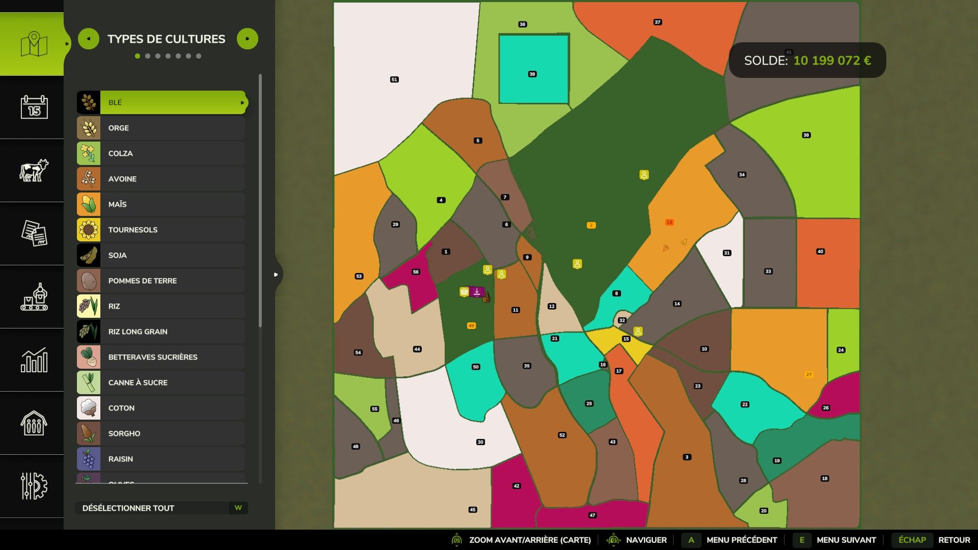 mehrere unterschiedlich große Felder von 8 ha bis 178 ha