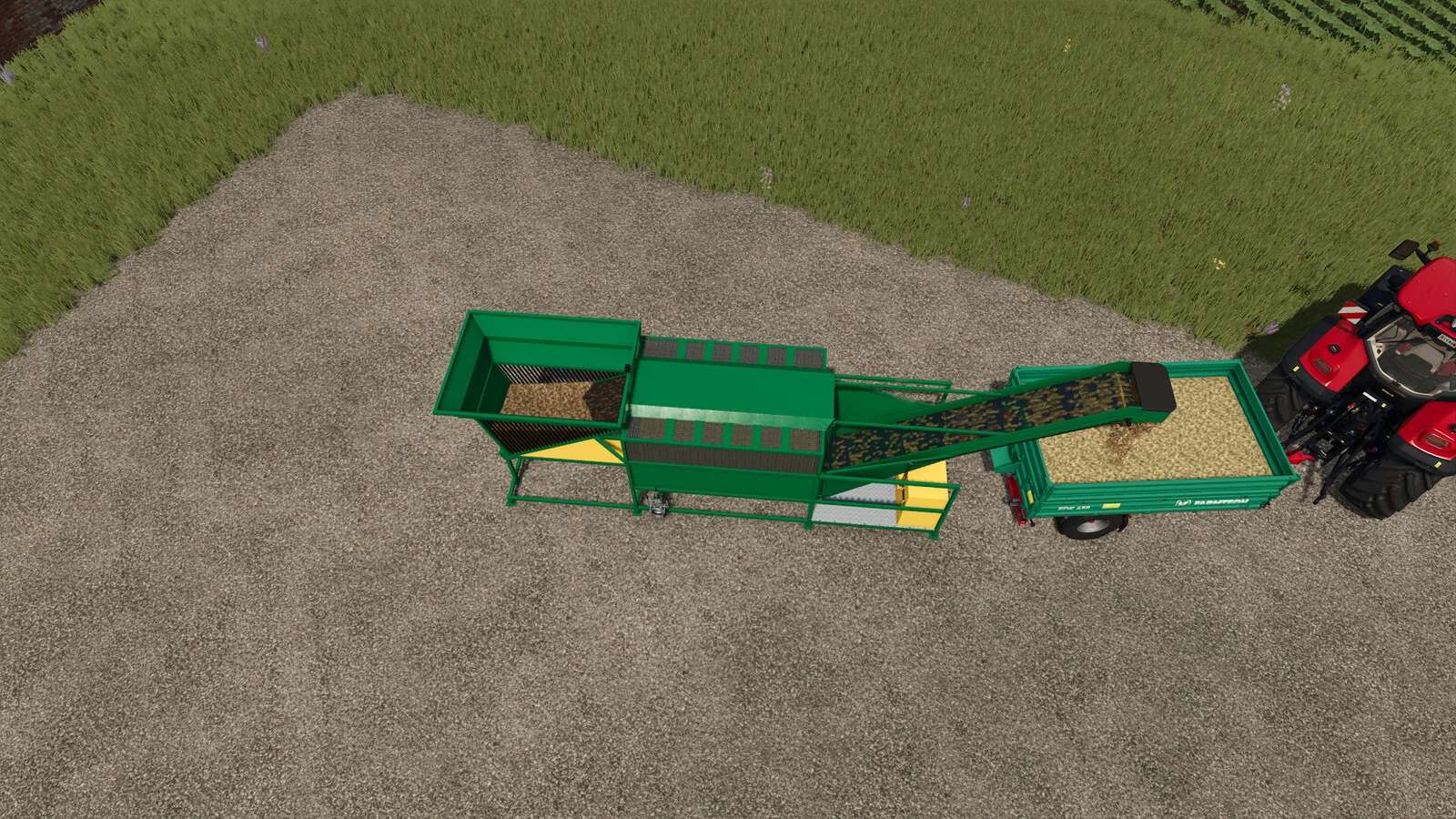 Die gewaschenen Kartoffeln können in Anhänger oder auf die beiliegende Palette gefüllt werden.