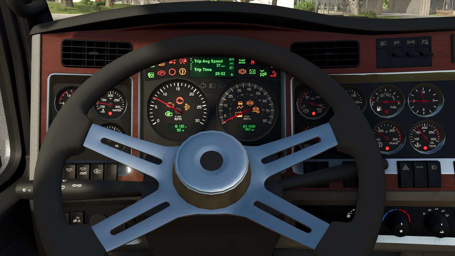 – Animiertes Armaturenbrett, Schalthebel, Pedale und Blinkerschalter.
