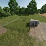 Kleiner Hühnerstall zur Hühnerhaltung und Eierproduktion. Bei Bedarf kann der Hühnerstall mit der Mod „Expandable Pastures“ vergrößert werden, um mehr Hühner unterzubringen.