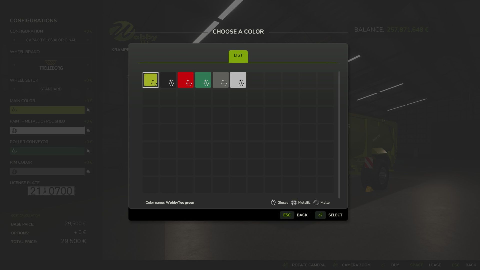 Farbauswahl für Außenfarbe, Felgenfarbe, Lenkstreifen und Fahrgestell des Sattelaufliegers (einschließlich der originalen Krampe-Farben!)