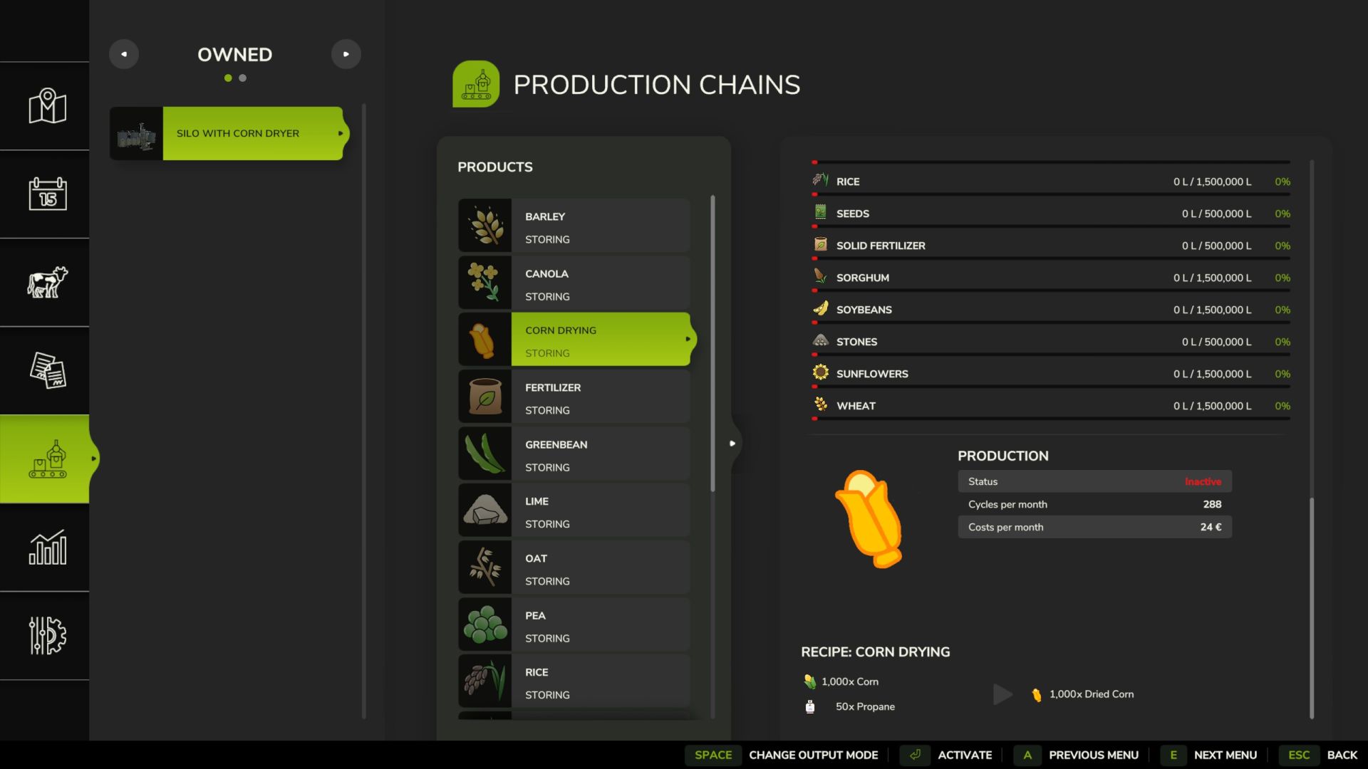 Dies begann als eines der Verkaufsargumente auf der US-Basiskarte. Jetzt ist es ein Maistrockner und Lagerort, den Sie füllen und dann zum Verteilen Ihrer Ernten vorbereiten können, um sie zu verkaufen oder für andere Produktionen zu verwenden.