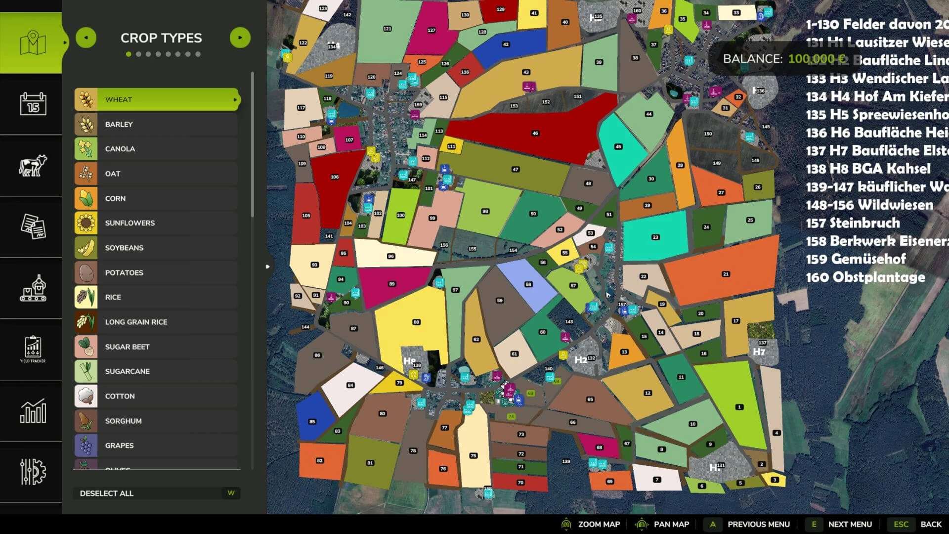 130 Felder, davon 20 Wiesen