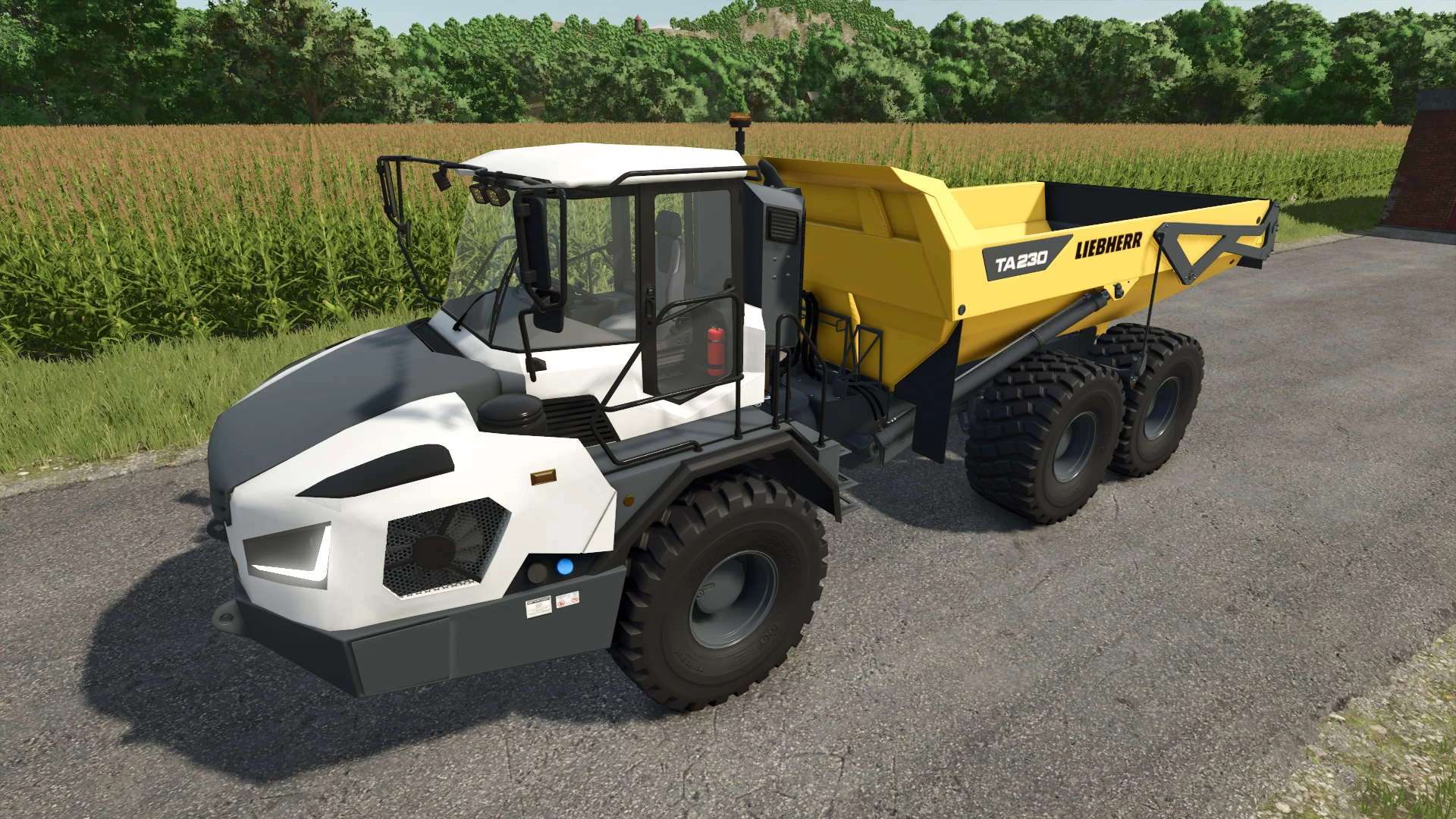 Dies ist ein Liebherr TA230 Muldenkipper aus den Jahren 2021–2025. Er kann zum Transport verschiedener Erntegüter eingesetzt werden.