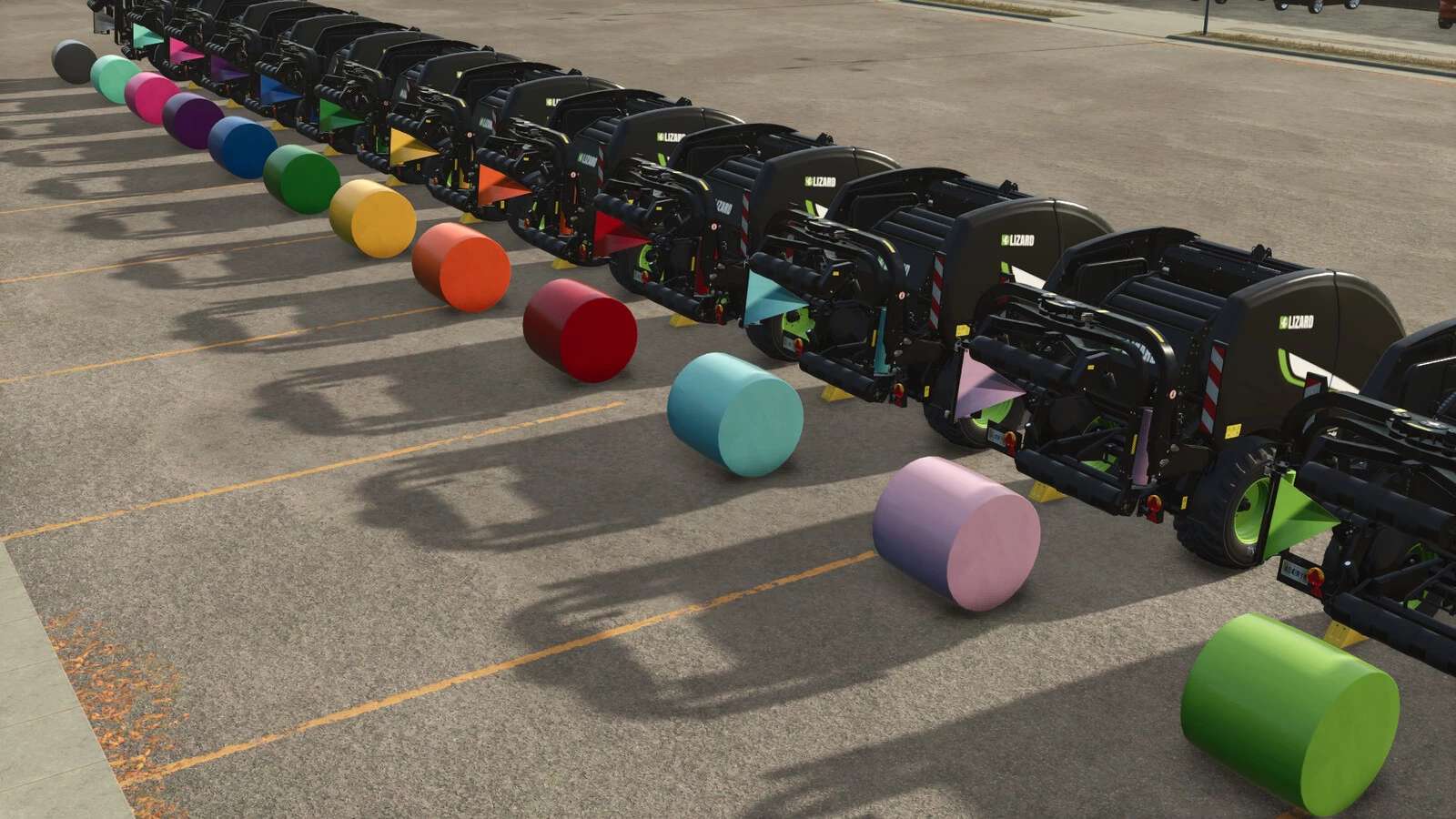 Aufgrund der Art und Weise, wie Ballenpressen mit Wickelmaterialien ausgestattet sind, sind diese Farboptionen nicht vorgefüllt in der Ballenpresse erhältlich. Zur Verwendung kaufen Sie die Ballenpresse mit „Leer“-Wickelkonfiguration und die Palette separat oder verwenden Sie das Nachfülldialogfeld.