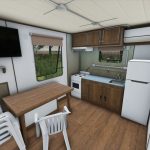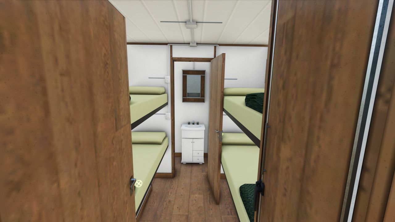 Mit einer Küche, einem Schlafzimmer und einem Badezimmer im Landhausstil, Satellitenfernsehen oder Internetanschluss und der Möglichkeit, Strom über Solarpaneele zu gewinnen, sind diese Wohnmobile ideal für die Arbeit im Gelände.