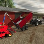 Dieser Umbau bietet drei Kapazitäten von 5,6 m³ bis 18,4 m³. Bei einigen Konfigurationen lassen sich die Seitenwände zum Beladen von Ballen und Paletten öffnen. Alternativ können Sie sich auch für den Verzicht auf Seitenwände oder einen praktischen Rahmen für den einfachen und sicheren Transport von 125 cm großen Rundballen entscheiden. Zusätzlich können Sie den Kipper mit einer Befüllschnecke ausstatten, um das Befüllen der Sämaschine einfacher und schneller zu machen. Dank der im Schneckenpaket enthaltenen Trennwand können Saatgut und Dünger vom selben Anhänger aus befüllt werden. Weiteres optionales Zubehör umfasst verschiedene Abdeckungsoptionen und eine Anhängerkupplung.