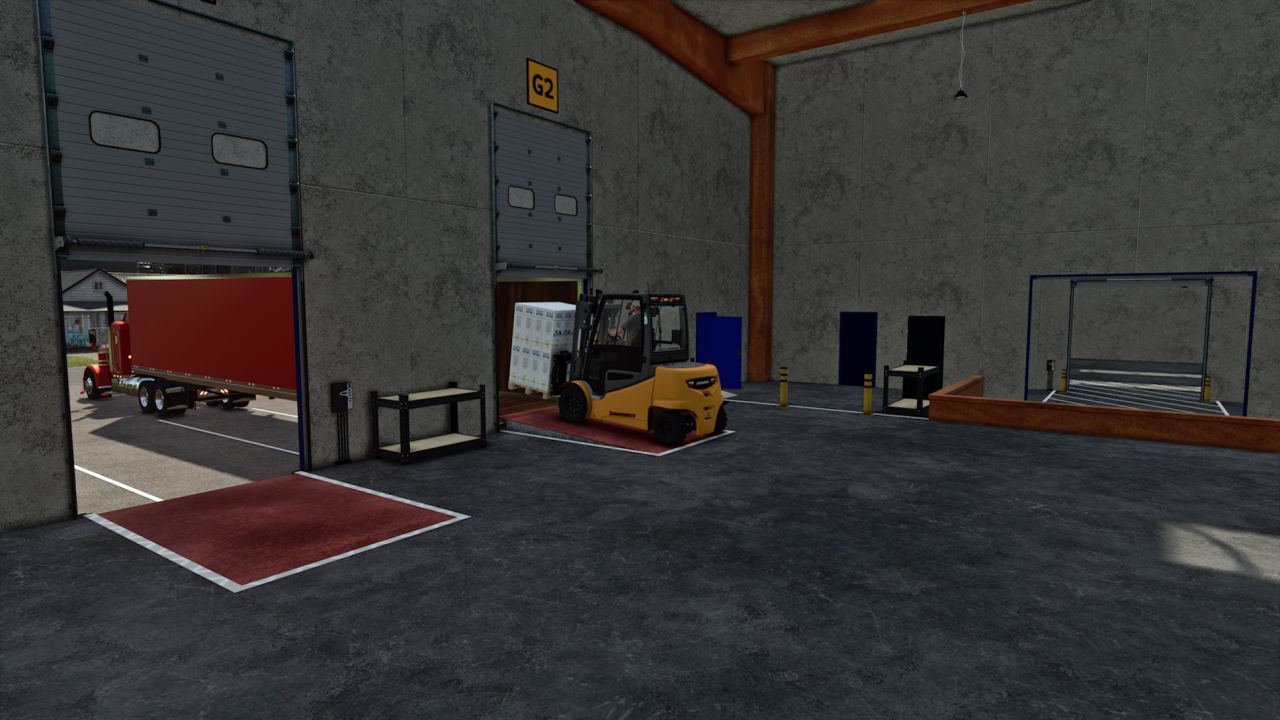 Nur eine Bearbeitung, die ich am Lager vorgenommen habe, damit Sie Paletten zum halben Preis kaufen, sie auf einen LKW laden und mit der Auslieferung Geld verdienen können. Der Kauf von Paletten erfolgt von Tür zu Tür über die Laderampen im Büro. Sie werden im Inneren auf den Regalen erscheinen und Sie können sie im mittleren Raum abholen. Die Laderampen wurden für den Manac-Anhänger eingerichtet.