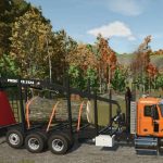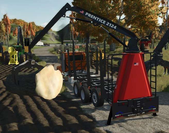 Dieser Schwerlast-Holztransporter verfügt über ein robustes orangefarbenes Mack-Fahrgestell und einen speziellen Holzanhänger mit Prentice 2124 Ladekran. Das Fahrzeug ist für effiziente Forstarbeiten konzipiert und kombiniert hohe Transportkapazität mit einem integrierten hydraulischen Holzlader für schnelles Be- und Entladen. Der stabile Rahmen des Anhängers mit mehreren Achsen gewährleistet einen sicheren Transport schwerer Holzladungen auch in anspruchsvollem Gelände. Ideal für Spieler, die ihre Forstwirtschaft im Landwirtschafts-Simulator 25 erweitern möchten: Dieses authentische Holztransport-Setup bietet professionelle Ausrüstung für Ihre virtuellen Waldarbeiten.