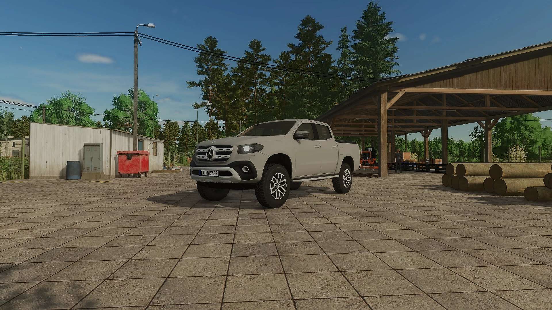 Mercedes-Benz X-Klasse-Modifikation für den Landwirtschafts-Simulator 25. Die Modifikation verfügt über ordnungsgemäß funktionierende Arbeitsscheinwerfer.