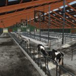 Ein moderner Rinderstall mit integriertem Güllelagersystem.