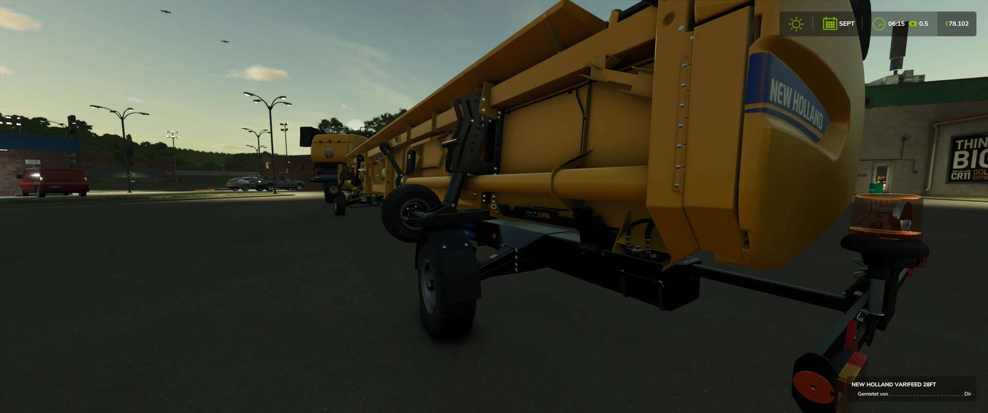 Im Shop konfigurierbar: New Holland Logos, Warn-LEDs, zusätzliche LEDs an den Seiten, Anti-Claas-, John Deere- und Case-Aufkleber, DJB-Aufkleber (Rabatt), Werbung auf dem Dach (Häckterjäger, DJB [Rabatt], Forbidden Mod [Rabatt]) oder New Holland, Reifen, Strohhäckselbreite [zwischen 9,15 m und 12 m], Warnschilder, Rohrlänge [klein, mittel, groß], Beifahrersitz, Rundumleuchte, Tiger-Aufkleber, Türaufkleber, Kühlbox, Warn-LEDs am Warnschild und Korntankgröße