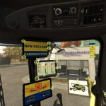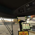 Innenraum-IC: Leiter ein-/ausklappen, alle Monitore ein-/ausschalten, zwischen 4 Anzeigen auf dem Hauptmonitor (die ebenfalls ICs haben) umschalten, Rundumleuchte ein-/ausschalten, Beleuchtung der vorderen/hinteren Förderschnecke ein-/ausschalten, Scheibenwischer einmal wischen, Korntank öffnen/schließen, Motor starten/stoppen, Dreschtrommel (Schneidwerk) ein-/ausschalten, Förderschnecke ein-/ausklappen.